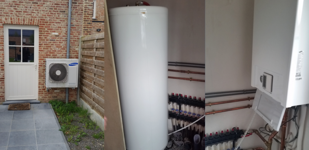 De motivatie van bewoner Jouri Vanwesenael laat aan duidelijkheid niets te wensen over: E-Peil punten winst behalen. “Door energiezuinig te verwarmen kan het E-Peil naar beneden.” vertelt Jouri. “Zo wordt het kadastraal inkomen verlaagd. Onder een bepaald E-Peil is zelfs verlaging of vrijstelling voor 5 of 10 jaar mogelijk. De invloed van warmtepompen hierop is groot. Vooral ook omdat we voor onze woning er voor gekozen hebben om tevens zonnepanelen te installeren. 24 stuks met een totale capaciteit van 6000 kW.